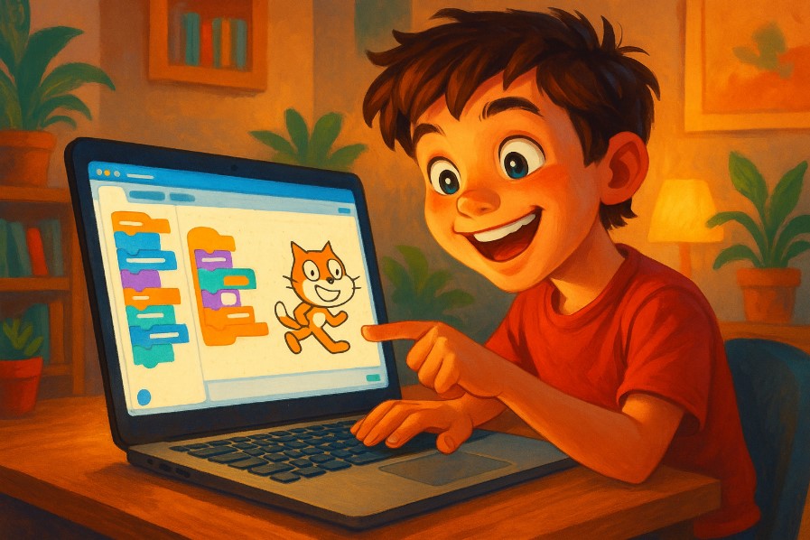 Scratch — это визуальный язык, созданный специально для детей. Вместо кода здесь используются цветные блоки, которые нужно соединять между собой. Это идеальный старт, чтобы понять базовые принципы алгоритмов, циклов и условий без риска сделать синтаксическую ошибку. Ребенок сразу видит результат своих действий: персонаж начинает двигаться, издавать звуки, взаимодействовать с другими объектами.
