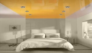 - Визуально увеличить комнату. Светлые и глянцевые потолки отражают свет и делают пространство воздушным и просторным.