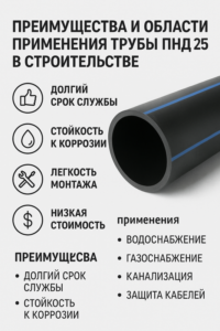 - Сельское хозяйство и орошение: использование ПНД труб в системах полива уменьшает потери воды и увеличивает эффективность ирригации.